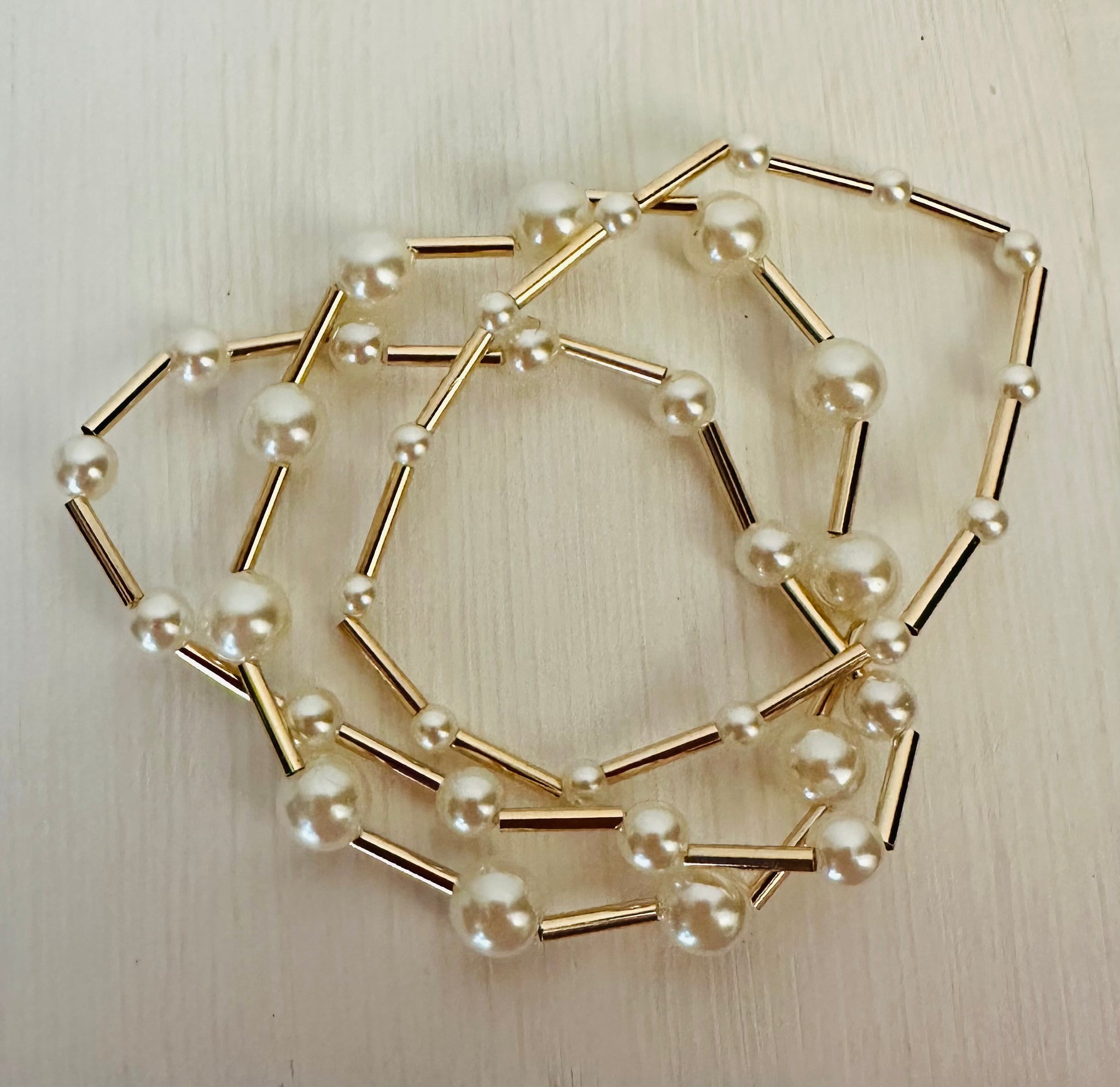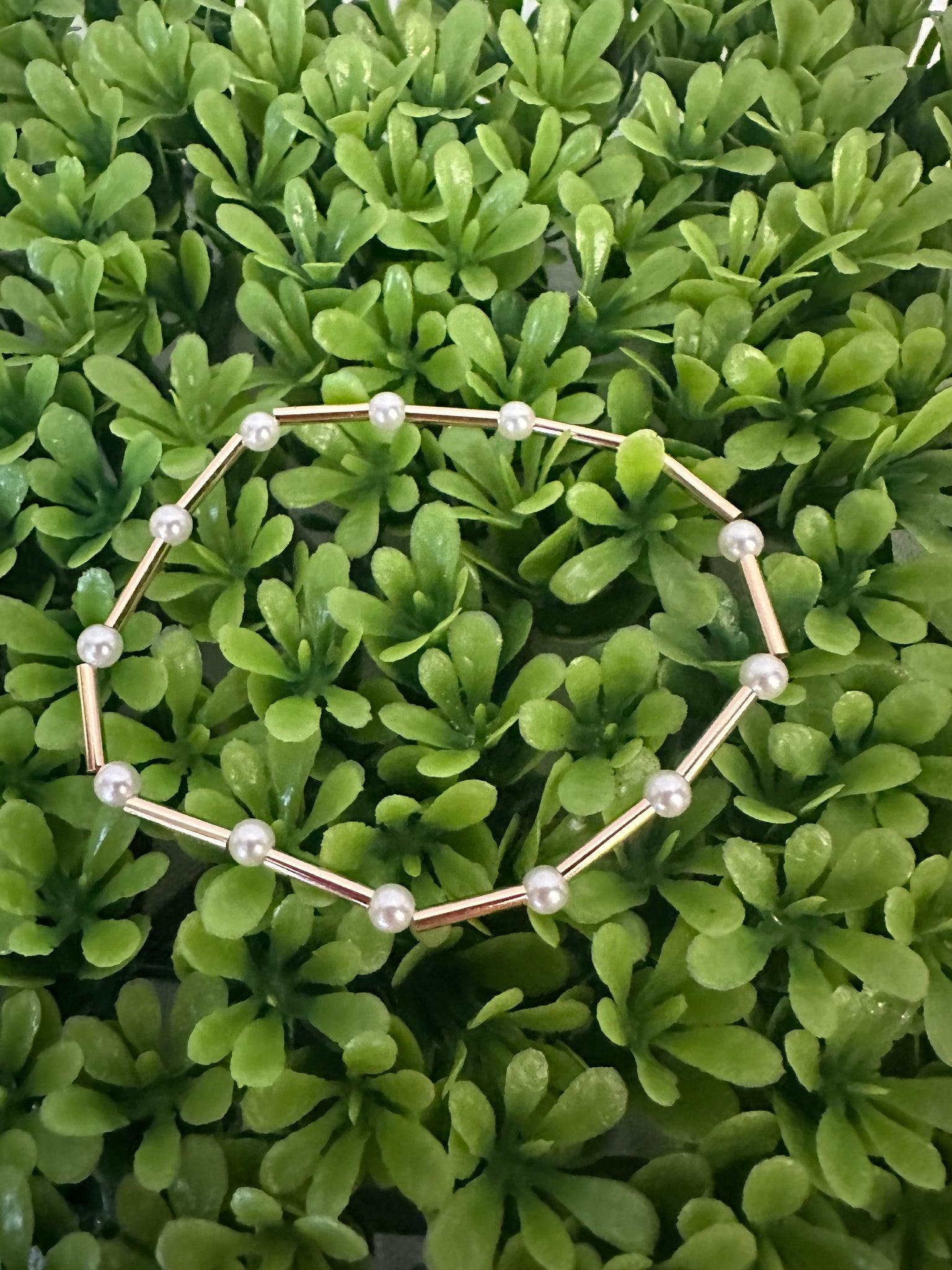 This 12 pearl and gold stretch bracelet is perfect for any outfit or to add to any stack bracelet set. It will add a touch of elegance to any outfit. The pearls are small and are a perfect size.