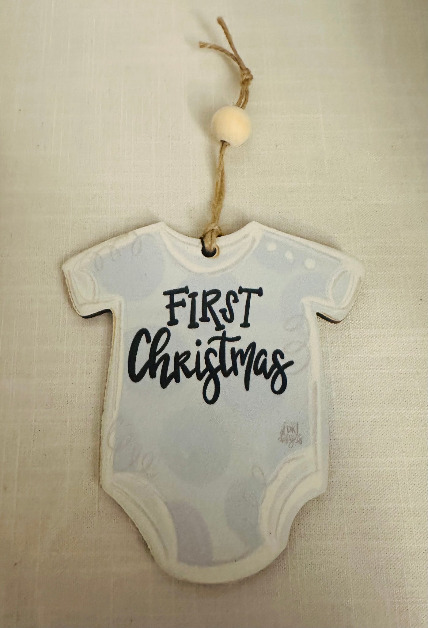 This wooden ornament is the perfect gift for that first baby boy Christmas.