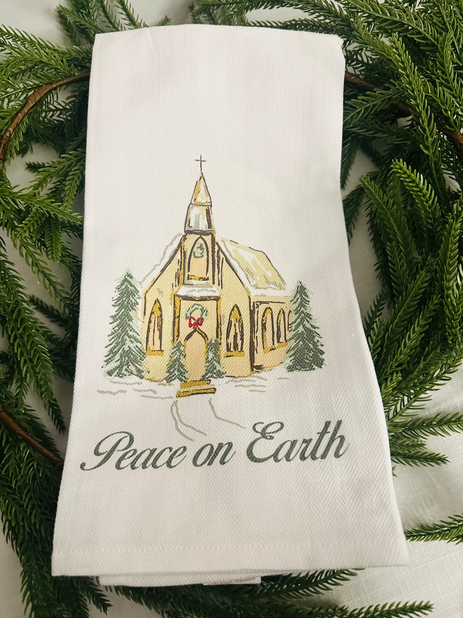 This peace on earth hand towel is a nice holiday addition to your kitchen.