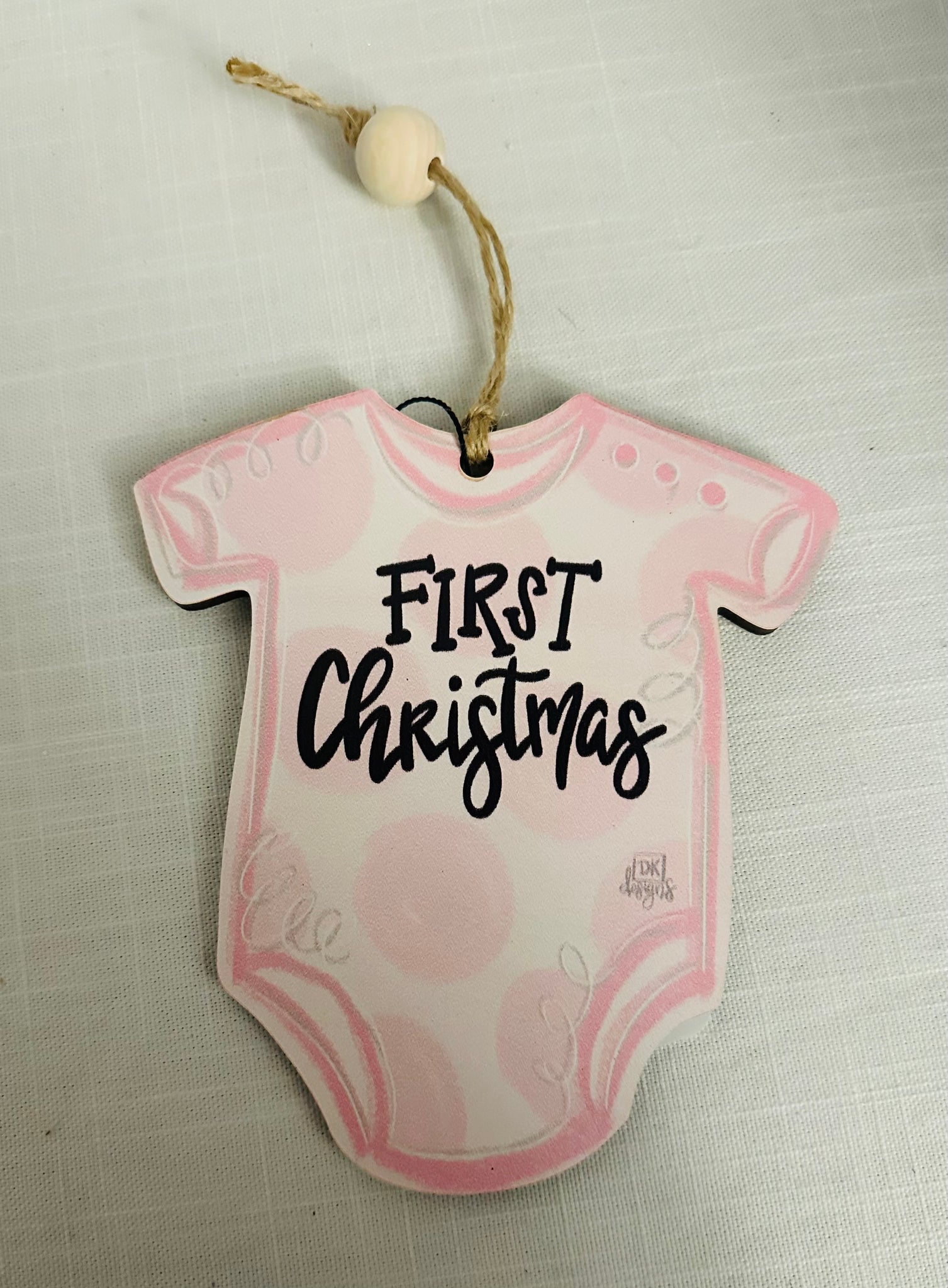 This wooden ornament is the perfect gift for that first baby girl Christmas.